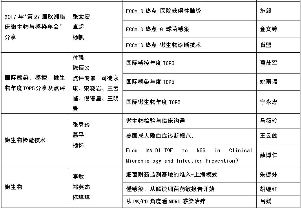 好啦,废话不多说,到底都有哪些临床微生物学相关大腕云集呢?又有哪些精彩的临床微生物相关内容呢?就让“表哥”来为我们揭晓吧,一目了然。